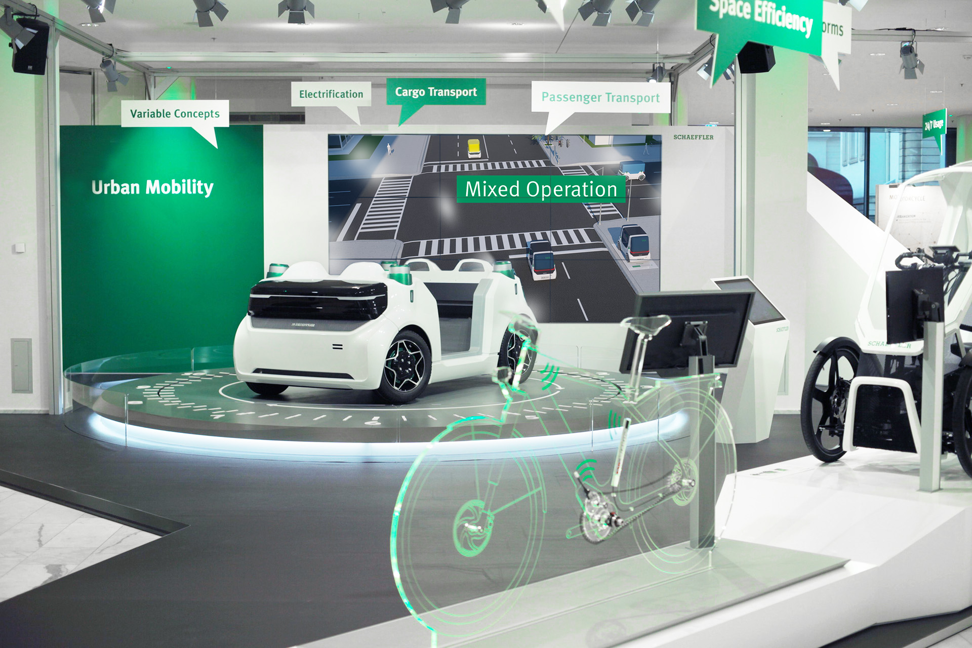 Kunzberg designed and produced five separate multi-media and interactive „worlds,“ in which the technologies were exhibited and presented for discussion between the developers and customers. Future-oriented topics like Urban Mobility, Digitalization, the Energy chain, and Simulation displayed Schaefflers’ activities surrounding “Mobility for tomorrow.”
